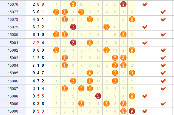 十位分析:从走势图上来看,近5期连续开出五期奇数,本期推荐关注偶数号。近期十位上跨度较大,本期看好小号球。3d第2015091期舍利子十位关注: 234689