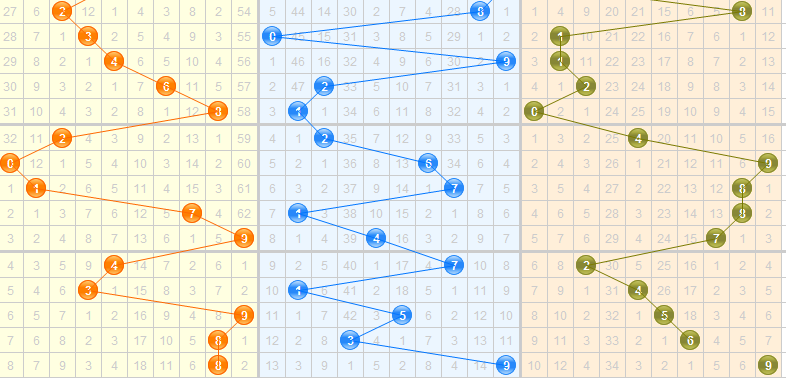 从出号图分析来看,上期开出组三,出奖号位899。上期开出8号球和9号球,注意拖号,本期看好8、9号球的开出。0号球已经遗漏了8期,本期可防守0号球的开出。另外3号球和6号的走势由冷变暖,本期看好3号球和6号球的开出。7号球的最近的走势偏冷,本期看好7号球的开出。