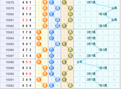从奇偶走势图来看,上期开出的是偶奇偶,奇偶比为一比二,本期推续关注2奇1偶的形态。百位上上期开出的是偶号球,根据近期偶号球的开奖规律,本期推荐关注奇号球。十位上上期开出的是奇号球,本期推荐关注偶号球。个位上上期开出的是偶号球,根据走势图来看,推荐关注奇号球的开出。本期综合推荐关注奇偶形态:奇偶奇