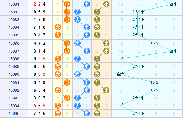 从近几期3d之家和值走势图来看,上期开出的和值是17,近几期的和值主要集中在15到20区间,综合走势图,本期和值推荐关注13-20区间。