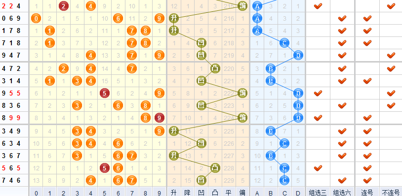 从近几期的类型走势图来看,上期开出的是组六组合,15期中总共开出了4期组三,本期推荐继续关注组六组合。
