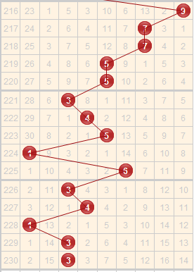 从跨度走势图来看,上期开出的跨度为3,近几期跨度的波动不大,集中在1到4,前两期跨度都为3,综合以上,本期推荐关注关注跨度:3,4,5,6