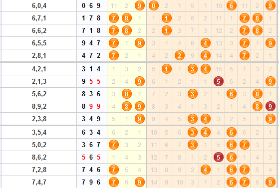 趋势分析:上期开出了769,其中的6号球跟9号球都是近10期中比较热的号码,7号球是个温号,本期的话可以关注冷号0号球跟2号球的开出。