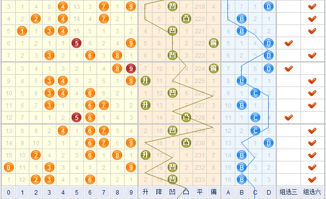 根据类型走势图,上期开出的是组六组合,已经连续五期开出了组六组合,从走势图上看,本期预计会转为开出组三类型,本期苏会文推荐类型:组三组合。