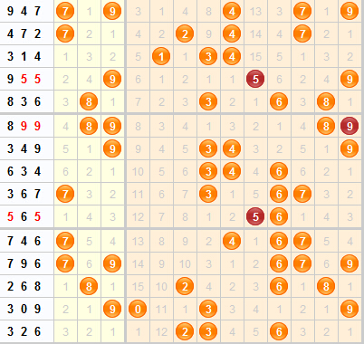 和值分析:上期开出了和值11,开在了第二区域内,近期和值大多在第二区域内开出,本期的话预计和值继续会在第二区域内开出,和值14和18遗漏期数较多,可重点关注,综合分析和值关注:10、12、13、14、15、16、17、18。