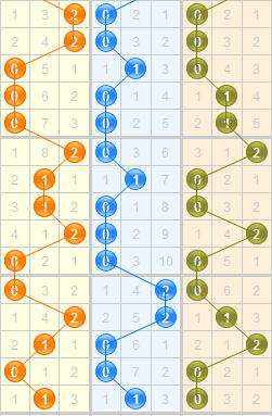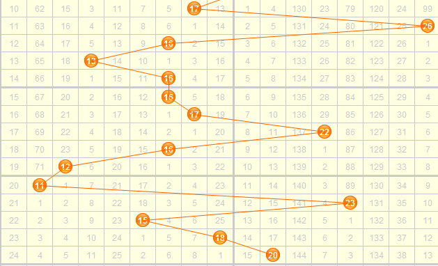 上期开出的和值是20,从近期的和值走势图来看,大多集中在第二区域,上期和值20在遗漏17期后终于开出,10、13、14、19遗漏期数都比较多,本期和值看好在区间10-20之间开出。结合走势,本期推荐关注和值:10、11、12、13、14、16、17、19,重点好10、13、14、19。