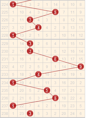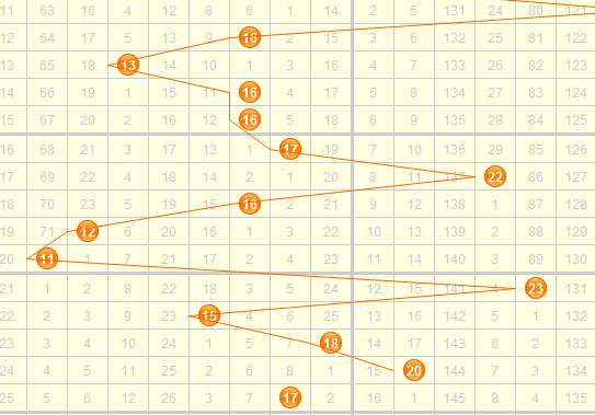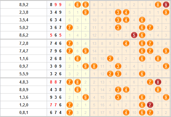 从跨度走势图来看,上期开出的跨度为3,属于小跨度,近几期的跨度分布比较散,最大值9,最小值1.本期预计跨度会向右边走走,综合分析,本期推荐关注关注跨度:3,4,5,6