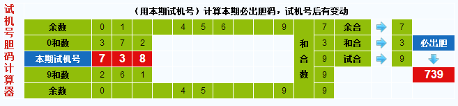 3D试机号胆码计算器:今晚必出胆码739