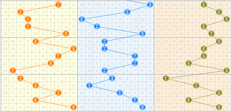 上期开出的和值是25,开在了第三区域内,近期和值走势波动都比较大,本期预计会回到第二区域内开出,其中和值11、12、14、16遗漏期数都比较多,可重点关注下。结合走势,本期推荐关注和值:11、12、13、14、15、16、17、18,重点看好11、12、14、16。