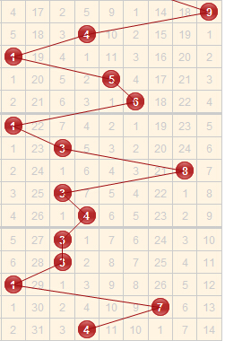 近5期开出的跨度是3-3-1-7-4,上期开出的跨度是4,是一个较中间的跨度,近5期中有2期跨度3,本期的话预计会在跨度3附近开出,其中跨度2已经遗漏31期,可重点关注,跨度5也已经遗漏了11期,差不多快开出来了,可进行防守。结合走势,本期关注跨度1、2、3、5。