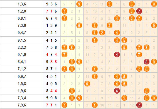 趋势分析:上期开出了771,7号球和1号球都是近几期比较热的号码,本期可以重点关注015789。