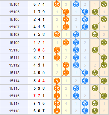 从大小走势图来看,上期开出的是大小大,近几期小号球有所回温,分析走势图本期推荐关注2小1大的形态。百位上上期开出的是大号球,大号球已经连续开出5期,本期推荐关注小号球的开出。十位上上期开出的是小号球,小号球连开了两期,分析走势图,大号球和小号球都是连开两期之后变换,本期推荐关注大号球的开出。个位上上期开出的是大号球,近几期大小号球是隔期开的,上两期开出了大号球,本期推荐关注小号球的开出。 综合以上本期推荐形态小大小,大小小。