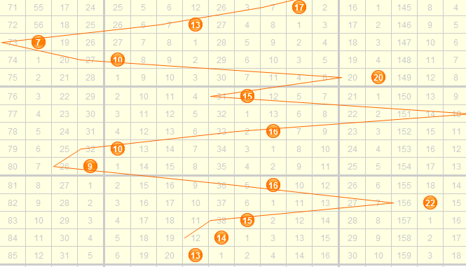 从3d之家3d和值走势图来看,上期开出和值13,在第二区域,近3期和值从15依次递减到14,分析走势图,预计本期和值会向变大,综合走势图本期重点关注和值14,15,16,18,19,20