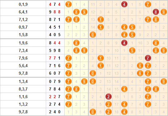 通过上面的福彩3D综合走势图可以看出,上期开出了240,2和4都是重复号,0号球是走势温和。