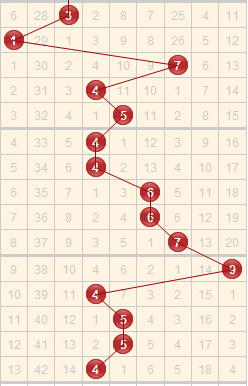 近5期开出的跨度是9-4-5-5-4,上期开出的跨度是4,是一个较中间的跨度,近期跨度主要都集中在4到7之间,本期的话预计还在在这个区间内开出,其中跨度6已经遗漏6期,可重点关注,跨度2已经遗漏42期,近期有可能会开出,可进行防守。结合走势,本期关注跨度2、4、6、7。