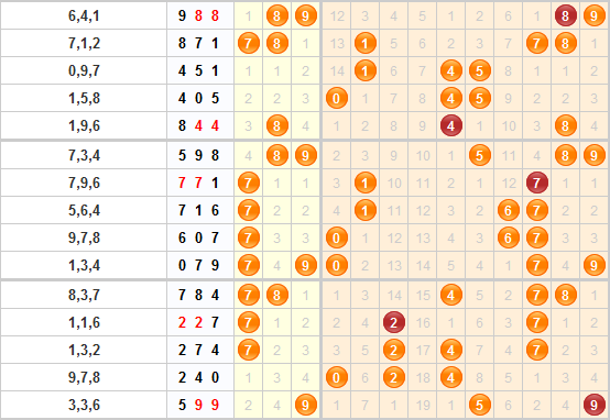 趋势分析:上期开出了599,9号球走势温和,5号球走势由冷变暖,所以本期可以重点关注034568。