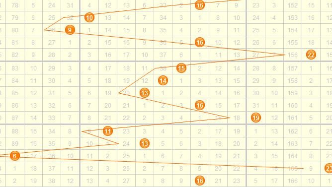 从3d之家3d和值走势图来看,上期开出和值16,在第二区域,近几期的和值走势比较分散,分析走势图,预计本期和值会向左走,综合走势图本期重点关注和值11 12 14 15 18 20