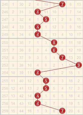 从跨度走势图来看,上期开出的跨度为7,属于大跨度,近几期的跨度主要集中在4和5,预计本期跨度与近几期差不多,综合分析本期推荐关注关注跨度:3,4,5,6