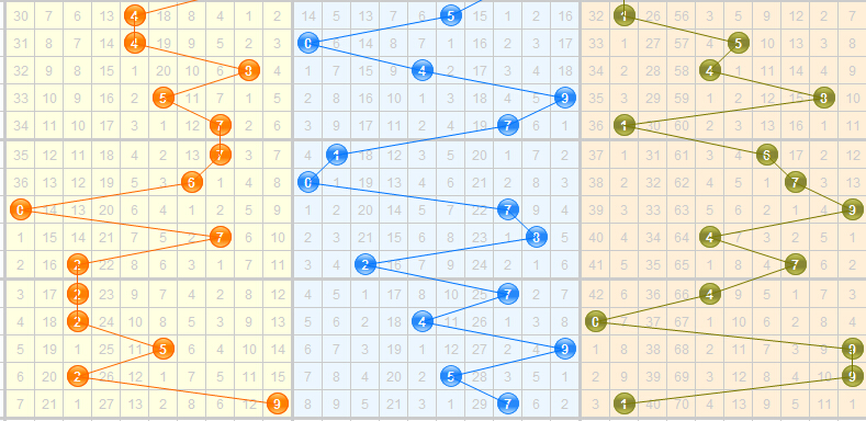 近5期开出的跨度是5-4-4-7-8,上期开出的跨度是8,是一个大跨度,近期跨度主要都集中在4到9之间,本期的话预计还在在这个区间内开出,其中跨度6已经遗漏9期,可重点关注,另外跨度2已经遗漏45期,近期有可能会开出,可进行防守。结合走势,本期关注跨度2、5、6、7。