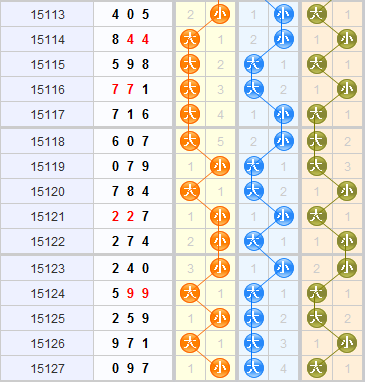 上期开奖号码是097,开出小大大,开出偶奇奇