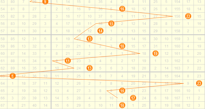 从跨度走势图来看,上期开出的跨度为9,属于大跨度,近3期开的都是大跨度,分别为7、8、9,预计本期跨度向左走,综合分析本期推荐关注关注跨度:2、4、5、6
