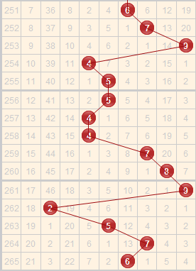 从跨度走势图来看,上期开出的跨度为6,近3期跨度集中在5-7,预计本期跨度向左走,综合分析本期推荐关注跨度:1 3 4 5