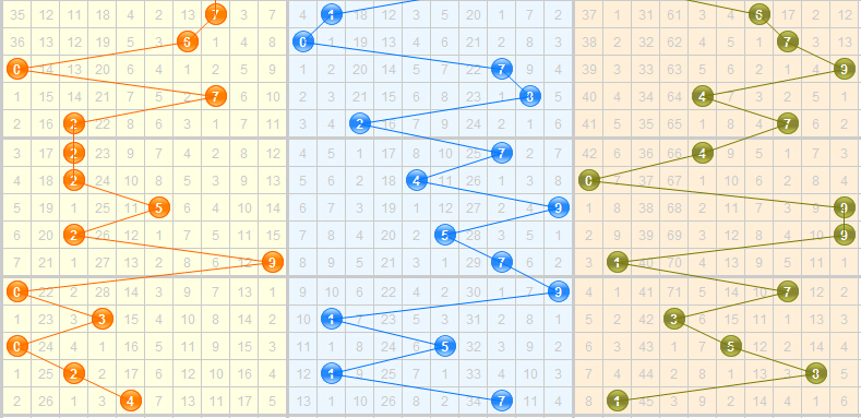 近5期开出的跨度是9-2-5-7-6,上期开出的跨度是6,是一个较中间的跨度,近期跨度小跨度开的比较少,本期的话预计会开出小跨度来,其中跨度1和跨度3遗漏期数都比较多,可重点关注。结合走势,本期关注跨度1、3、4、5。