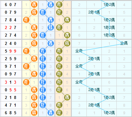 结合3d之家3d奇偶走势图近15期走势来看,上期开出偶偶奇,百位上近期偶号球的走势比较热,偶号球连续开了4期,本期推荐关注奇号球的开出。十位近期奇号球的走势大热,上期开出偶号球,前面8期连续开出奇号球,本期看好偶号球的开出。个位上近几期奇号球的走势比较热一些,奇号球连续开出2期,本期推荐继续关注奇号球的开出。本期奇偶形态综合推荐:奇偶奇、奇奇偶。