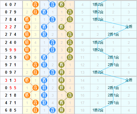 根据质合走势图来看,上期开出的是2合1质的形态。百位上质合号球的走势比较平衡,但是近5期合号球的走势比较热一些,本期推荐继续关注合号球的开出。十位上上期开出的是合号球,前面4期连续开出了质号球,本期推荐关注合号球的开出。个位上质合号球的走势比较平衡,上两期开出质号球,质号球近几期走势比较热一些,本期推荐关注质号球的开出。综合以上本期推荐形态:合合质,合质质。