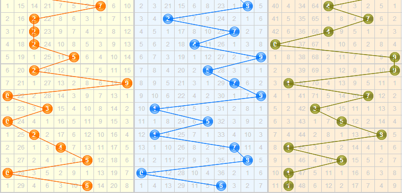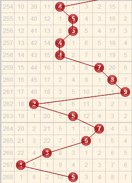 近5期开出的跨度是7-6-3-1-5,上期开出的跨度是5,是一个较中间的跨度,近期跨度大跨度开的比较少,本期的话预计会开出大跨度来,其中跨度8和跨度9遗漏期数都比较多,可重点关注。结合走势,本期关注跨度4、6、8、9。