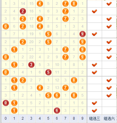 个位近15期分析,大号有7个,小号有8个,近期大小号走势比较平衡,近五期小号有3期,上期开出了小号1,结合走势图,本期看好个位继续开出小号来。2号球个位上已经遗漏48期,差不多快开出来了,本期可进行防守。0号球是上期开出的1号球的邻码,本期有机会开出。1号球近期持续走热,有机会继续开出1号球。个位上4号球、6号球和9号球近期走势偏冷,不看好本期开出,因此可重点关注0、1、2这三个数,杀掉4、6、9这三个数。