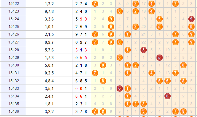 上期开奖号码中开出了个试机号的号码,那么本期的划试机号中的3号球跟7号球都需要重点关注;1号球是个隔期号而且还是个热号,本期有开出的可能;5号球在上一次是隔了2期,再上一次是隔了3期,那么本期的话是隔了4期,这样的规律估计会开出5号球;9号球目前有9期没有开了,是个冷号而且还是上期开出的8号球的临码,所以本期同样需要关注其开出来。综上所述3d第2015137期重点关注013579.