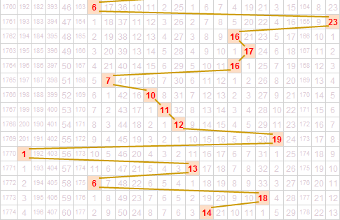 从3d之家3d和值走势图来看,上期和值14,近几期和值的走势比较分散,本期推荐关注13-21区间的和值数,综合走势图本期重点关注和值13 14 15 16 18 20