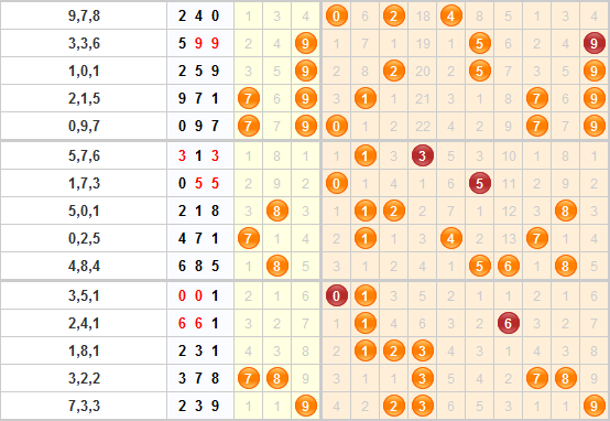 趋势分析:上期开出了239,2号球走势温和,3号球走势比较热,9号球遗漏9期开出。所以本期可以重点关注235789。