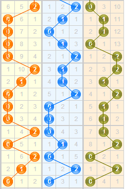 十位分析:十位上上期开出了0路的号码,近5期有3期开出了0路号码,本期十位看好转为1路或2路号码开出。