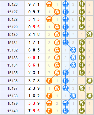 结合3d之家3d奇偶走势图近15期走势来看,上期开出全奇,百位上近15期偶号球的走势比较热,但近期奇号球的走势回暖,连续开出3期奇号球,本期看好奇号球的继续开出。十位近期奇号球的比较热一些,连续两期开出奇号球,本期看好偶号球的继续开出。个位上近几期奇号球的走势比较热,上两期连续开出奇号球,前面几期奇偶号球交替开出,本期推荐关注偶号球的开出。本期奇偶形态综合推荐:奇偶偶、偶奇偶。