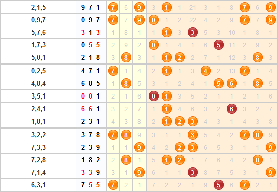和值趋势分析:上期开出了和值17,开在了第二区域内,预计本期和值会向左走,本期推荐关注10-18区间内的和值。