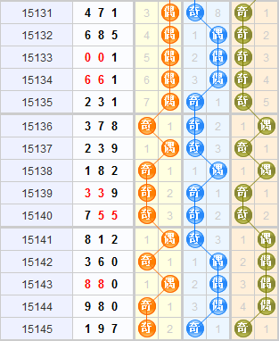 结合3d之家3d奇偶走势图近15期走势来看,上期开出全奇,百位上近15期奇号球的走势比较热,上两期开出奇号球,本期看好奇号球的继续开出。十位近期奇号球的比较热一些,上期开出额的是奇号球,本期看好奇号球的继续开出。个位上近几期偶号球的走势比较热,上期开出奇号球,本期推荐关注偶号球的开出。本期奇偶形态综合推荐:奇奇偶、奇偶奇。