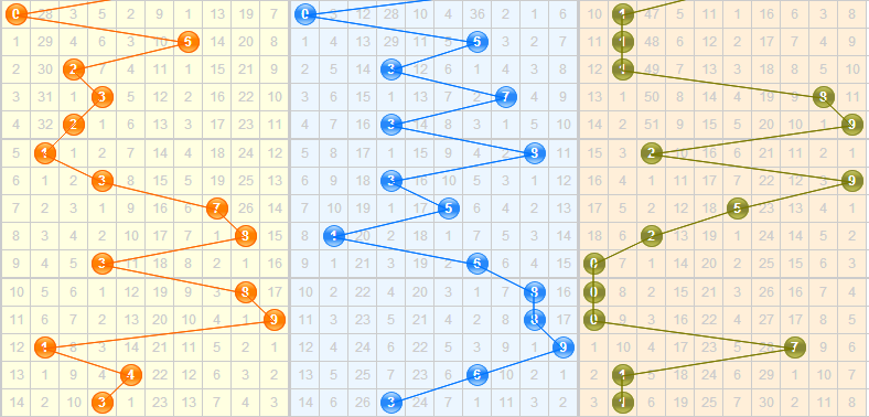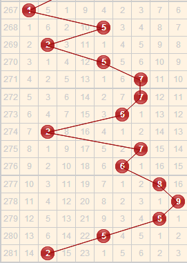 近5期开出的跨度是8-9-8-5-2,上期开出的跨度是2,是一个小跨度,近期跨度小跨度开的比较少,本期可能会继续开出小跨度,其中跨度1和跨度3遗漏期数都比较多,可进行关注。结合走势,本期关注跨度1、3、4、7。
