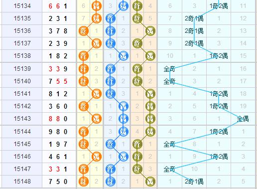 结合3d之家3d奇偶走势图近15期走势来看,近期奇数球的走势比较热,上期开出的是奇奇偶,但根据奇偶走势的连线图来看,有往右移的趋势,所以本期看好偶数球的开出。十位对于奇偶图前十五期的分析奇数球连开三次再开偶数球的几率比较大,所以本期继续看好奇数球的开出。个位上连开三期奇数球以后上期开出了一个偶数球,本期个位上继续看好偶数球。本期奇偶综合形态分析:偶奇偶,奇偶偶