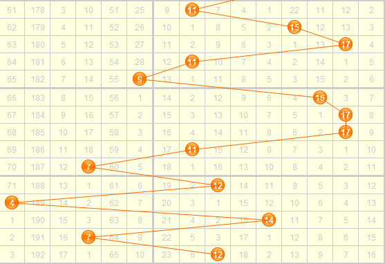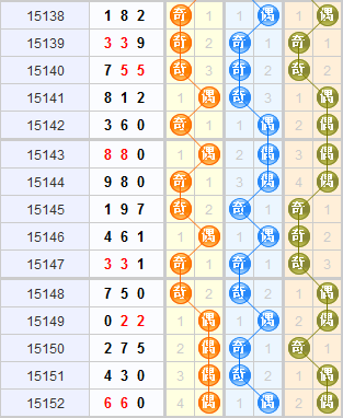 从3d之家3d和值走势图来看,上期开出和值12,近几期第一区域的和值和第二区域的和值交替开出,预计本期会开出第二区域靠左的和值,综合走势图本期重点关注和值:8 9 10 11 12 14