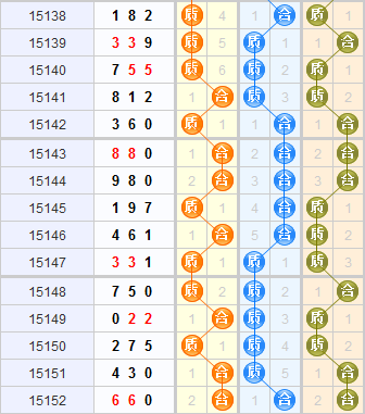 根据质合走势图来看,上期开出的是全合的形态,近期质号球比较热门,但近期合号球走势回暖,本期推荐关注合号球的开出。百位上已经连续两期开出了合号球,走势很热,所以本期百位看好合号球的开出;纵观十位近十五期开出的情况,合号球和质号球分别连续开出了5期,上期开出合号球,本期期待合号球的继续开出;个位上上两期开出合号球,前面两期开出质号球,本期推荐关注质号球的开出。综合以上本期推荐形态:合合质、合质合。