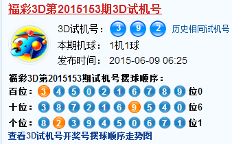 上期开奖号码开出660,开出全偶,开出组三,本期3d试机号的号码是392,本期看好奇数号球的开出,结合本期试机号试机号码,本期看好3号球、9号球的开出。