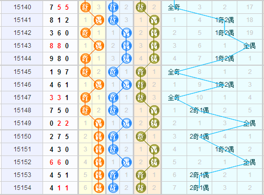 本期苏会文结合近期的走势,本期的奇偶形态推荐:奇偶偶、奇偶奇、偶偶奇