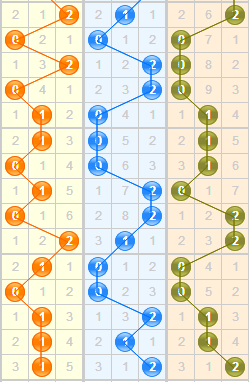 上期012路百位上是1路,近几期百位2路开的比较少,已经遗漏5期了,本期可进行防守,1路开的比较多,结合走势图,本期个位关注1路和2路。十位上从012路走势图上看,0路和2路近期开的比较多,上期开出的是2路,结合走势,本期十位看好转为0路号码开出。个位上期是2路,近期个位1路号码开的比较多,本期个位推荐关注0路和1路。