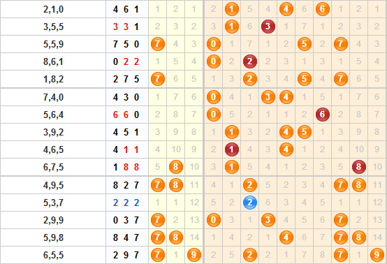 从3d之家3d和值走势图来看,上期开出和值18,上上期开出的和值是19,这两期和值逐渐稳定下来,预计本期和值会开在第二区域靠右的地方,综合走势图本期重点关注和值:14、15、16、17、18、19