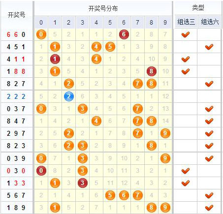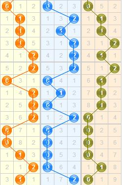 上期012路百位上是1路,近几期百位上012路开的还是比较均衡的,上期开出了1路球,本期继续开1路球的可能性不大,本期建议关注0路和2路;十位上从走势图看,在近期0路号码的走势相当火热,而且已经隔了一期,本期有机会开出;个位上近几期主要集中开在0路和1路球上,2路球已经遗漏9期,本期可放守;结合以上分析,本期苏会文012路推荐:002、202、101、001。