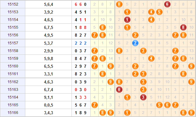 二、重复号分析:近十四期内开出四期组三形态,分别是两期连开的,两次连开之间隔了有7期,目前组六形态连续开出两期,近期内组三形态应该不会被开出来,所以本期继续看好组六形态的开出。