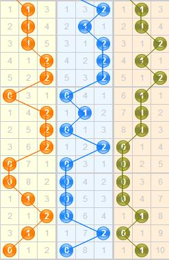 百位分析:百位上期开出的是0路号码,近5期百位上从0路号码经1路球开到2路号码,再原路返回,上期开出0路号码,预计本期会往1路球和2路号码的方向走,本期建议关注