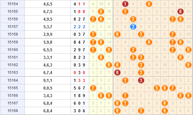 重复号分析:目前已经连续开出四期组六形态,近两期开奖号没有连码的现象,结合近十五期综合走势图,预测本期开出重复号的可能性不大,继续看好组六形态的开出。